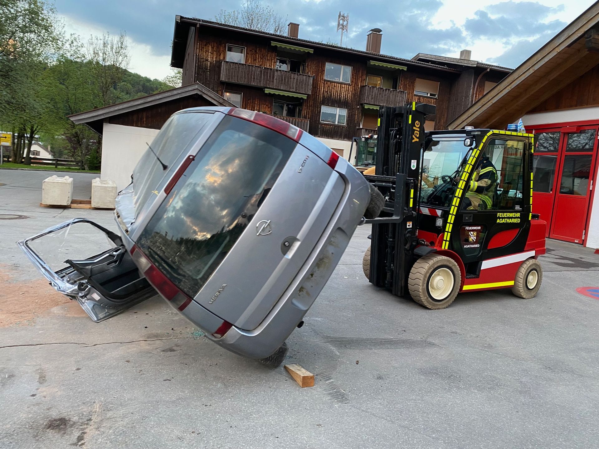 Zudem erweist er sich auch bei der Vorbereitung von Übungen, zum Beispiel beim Transportieren von Unfallfahrzeugen immer wieder als wertvolles Hilfsmittel sowie zum Örtlichen Transport von Sandsäcken bei Hochwasserlagen.