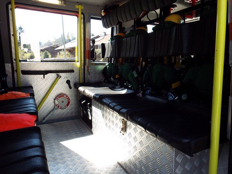 Er hat eine 9 Mann Gruppenkabiene, 4 Sitzplätze davon mit Pressluftatmern. Die Ladebortwand hat eine Hubkraft von 1500 Kg.